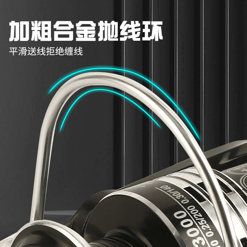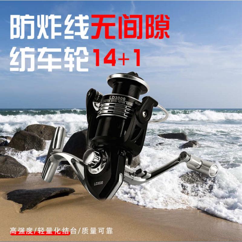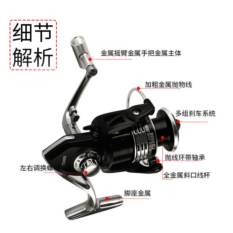 厂家批发黑色渔轮 全金属脚座路亚纺车轮抛线环金属摇臂海竿鱼轮