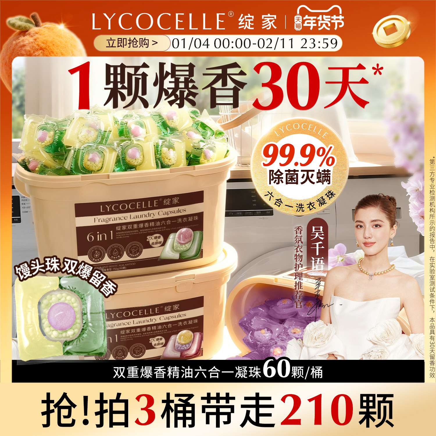 【淘宝秒杀】菁华清可新多合一洗衣凝珠樱花玫瑰除菌除螨持久留香