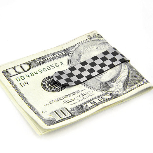 不锈钢钱夹枪黑色黑格子商务钱夹金属钞票夹男士夹金属钱夹零钱夹