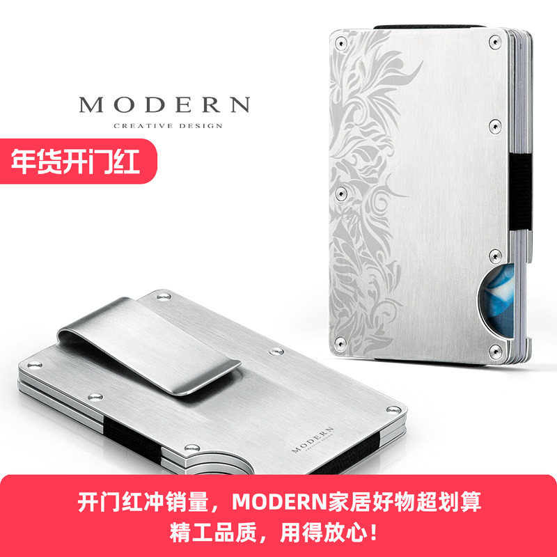 德国MODERN新款铝制防盗刷卡盒创意真皮卡包钱包时尚便捷金属钱夹