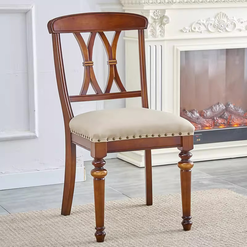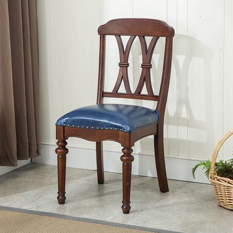 美式实木餐椅休闲椅靠背椅靠背家用书桌椅子桌椅欧式复古餐厅餐椅