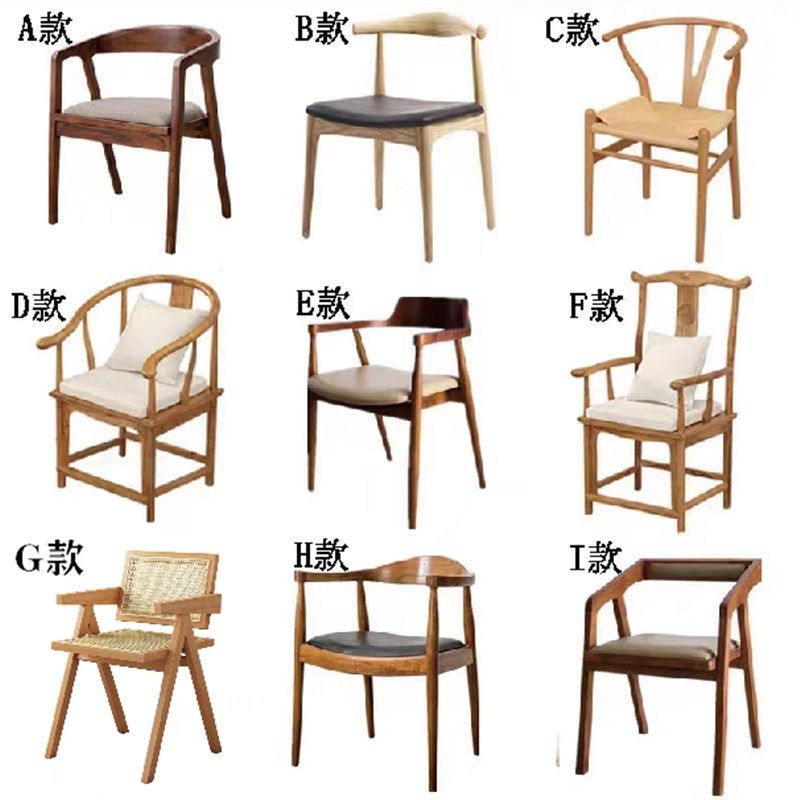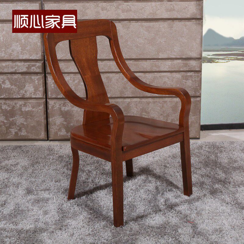 中式全实木餐椅休闲椅实木休闲靠背椅子餐厅复古椅子书桌扶手书椅