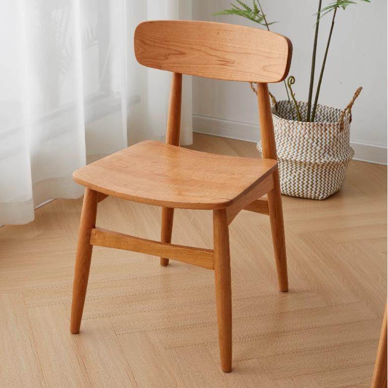 9U樱桃木巴适椅实木餐椅休闲椅书椅阳台客餐厅书房椅子原木风奶油