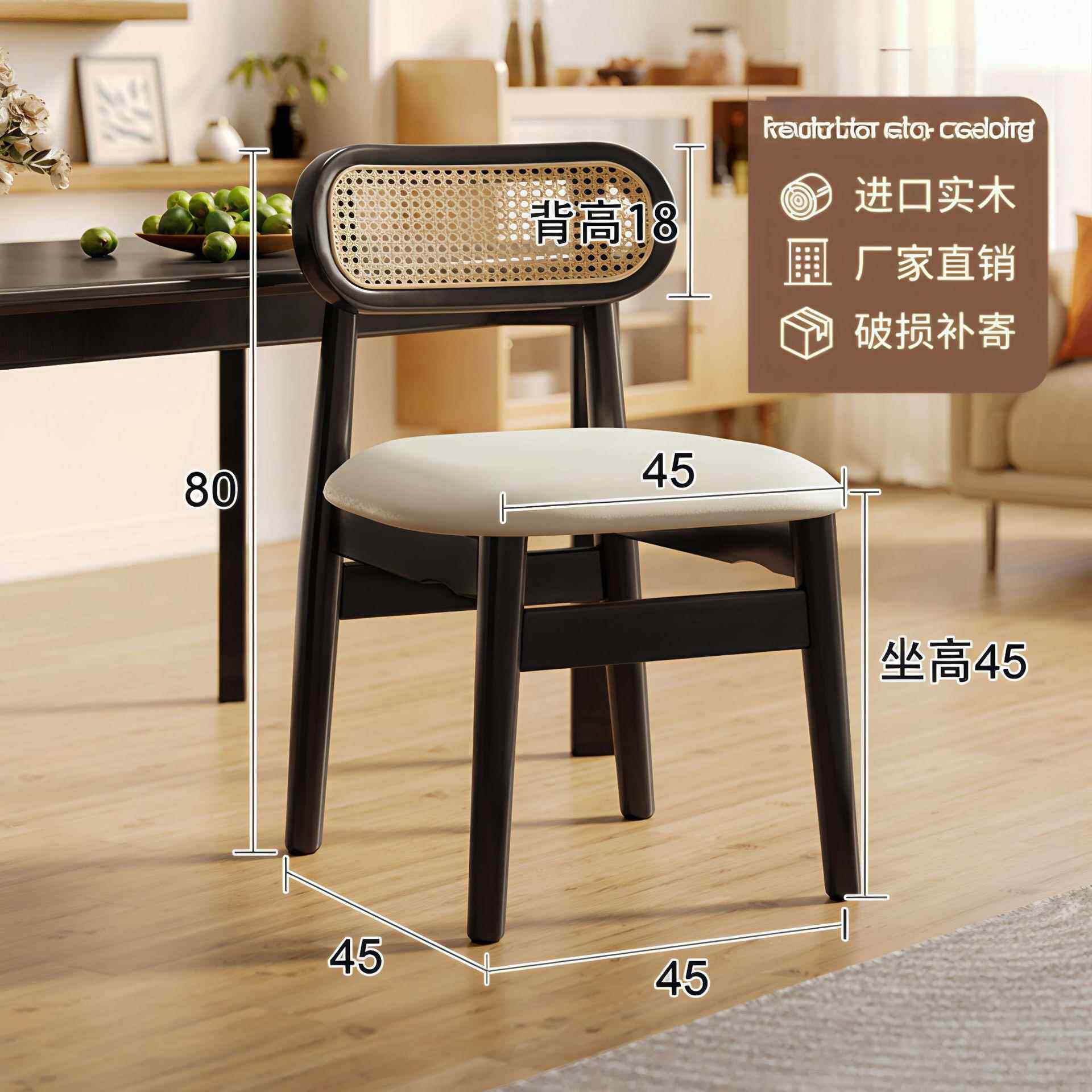 实木餐椅休闲椅北欧中古风藤编椅子餐厅吃饭餐桌椅靠背椅凳子轻奢