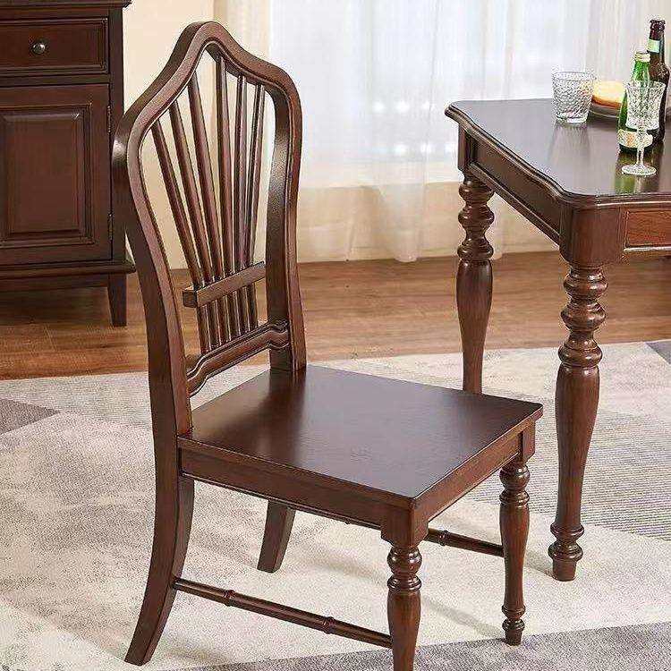 美式全实木餐椅休闲椅靠背椅家用凳书桌椅子欧式复古餐厅靠背木椅