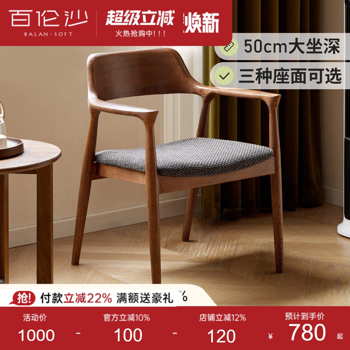 舒适原木奢实木餐椅休闲椅椅子餐桌家用椅靠背靠背椅现代简约轻餐