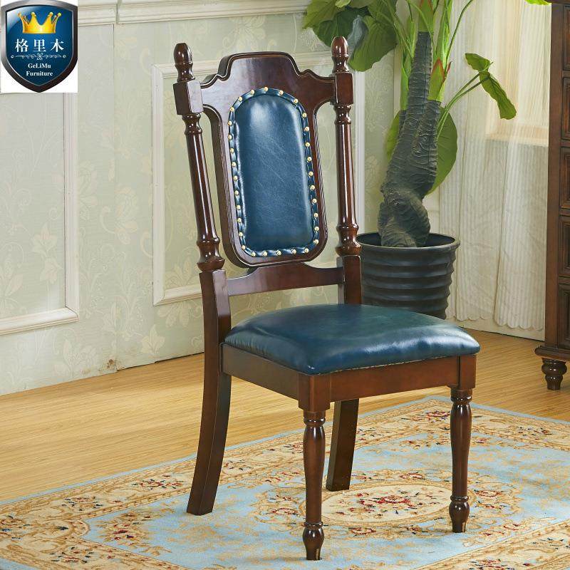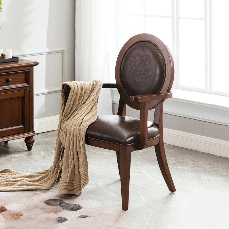 美式全实木餐椅休闲椅靠背椅家用凳书桌椅子欧式复古餐厅靠背皮椅