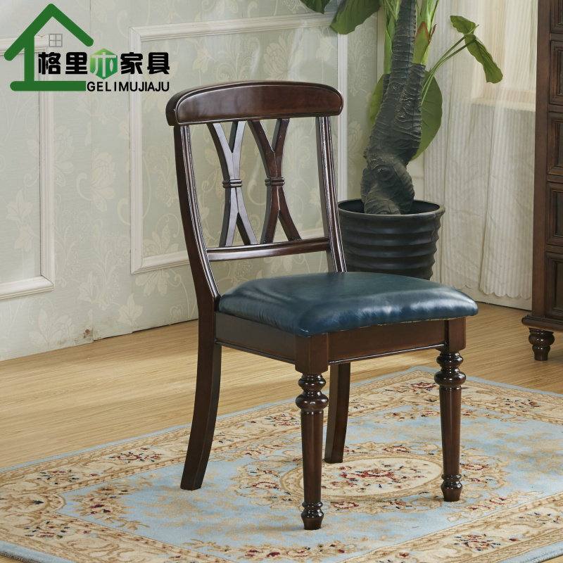 美式实木餐椅休闲椅靠背椅靠背家用书桌椅子桌椅欧式复古餐厅皮x&