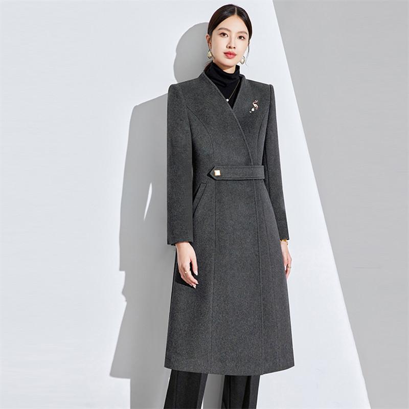 酒店高端气质中长款收腰女职业工作服外套冬季前台接待羊毛呢大衣