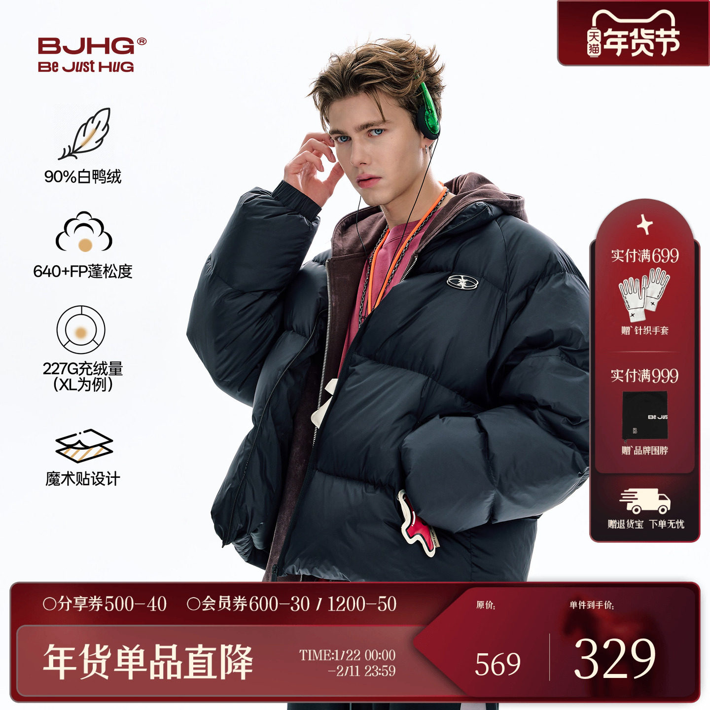 BJHG不计后果短款羽绒服男款冬季加厚2025新款90绒立领贴贴外套女