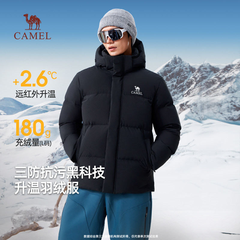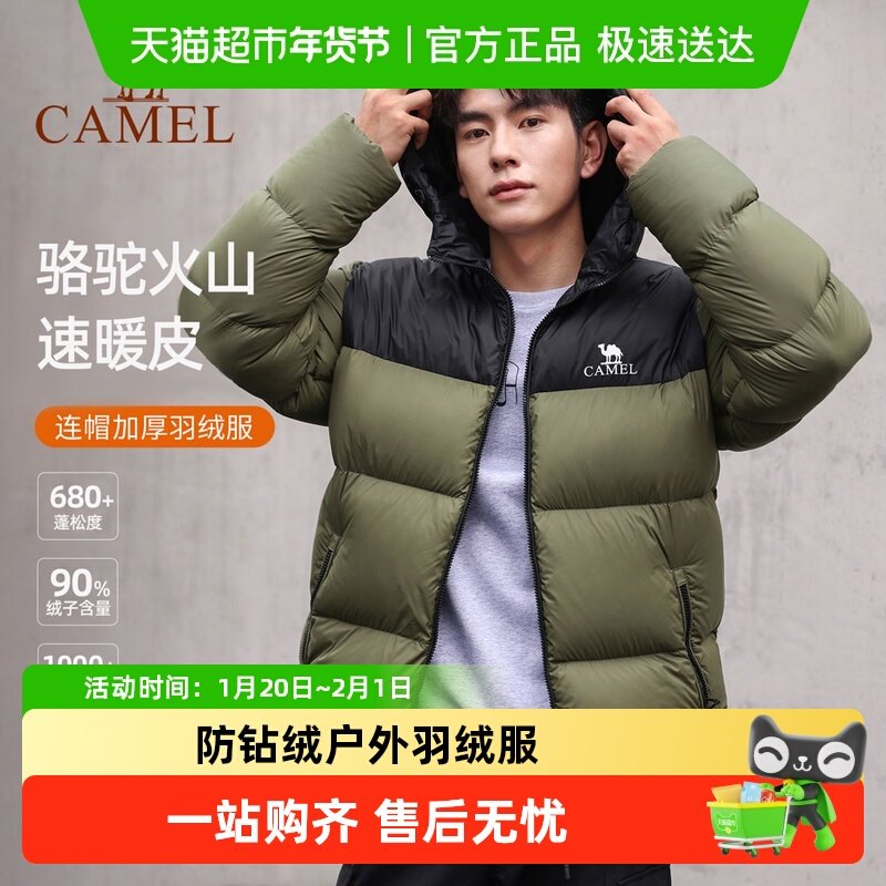 骆驼火山羽绒服男加厚冬季2025连帽短款情侣保暖男装防寒外套
