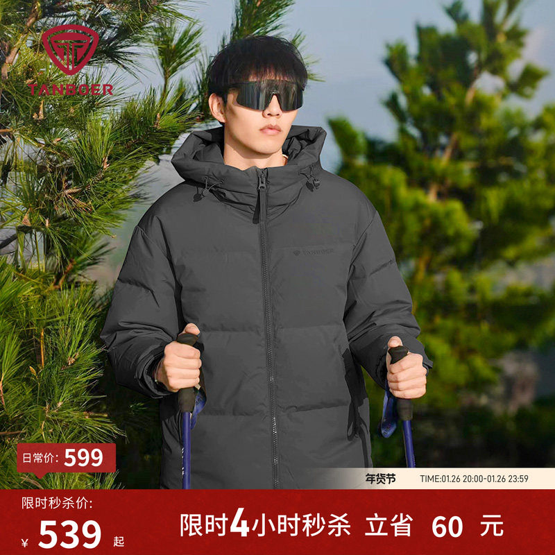 坦博尔男士加厚羽绒服冬季户外穿短款连帽款加厚防风运动保暖外套