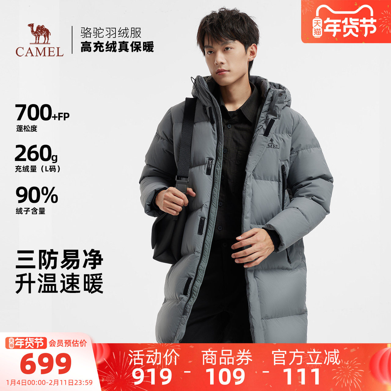 骆驼男装羽绒服男款中长款2025年新款冬季加厚面包服宽松防寒连帽