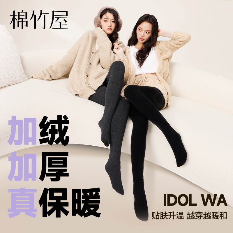 棉竹屋打底袜女士加绒加厚保暖灰色打底裤秋冬外穿连裤袜子IDOL袜