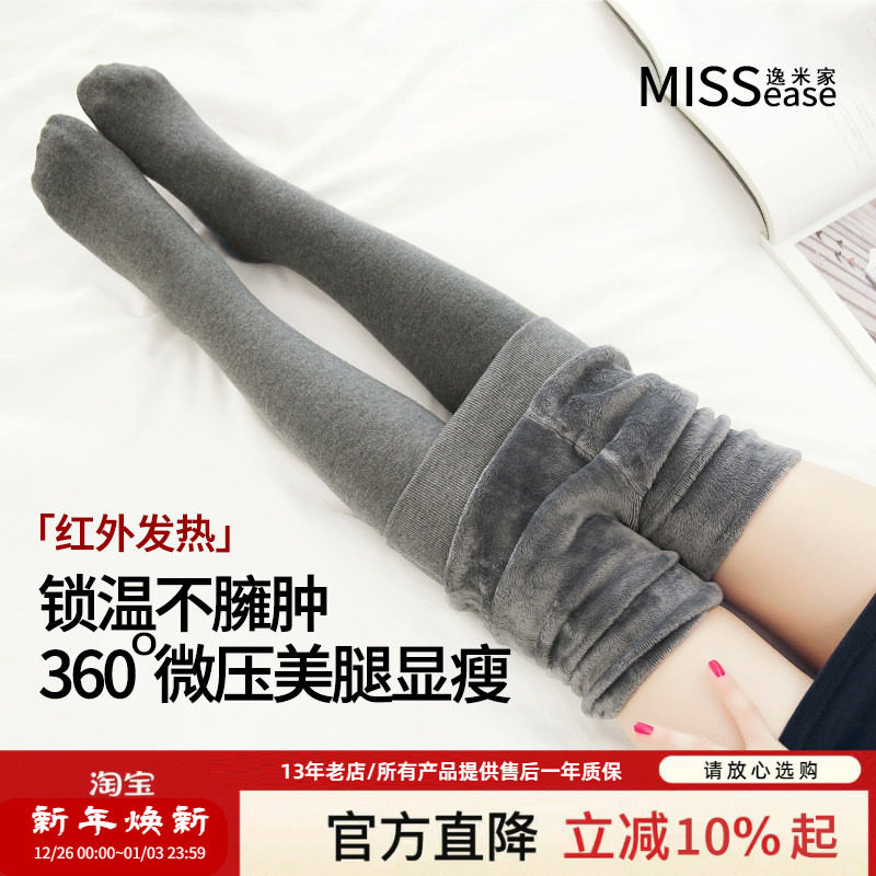 MissWiss打底裤女秋冬季加绒黑灰色外穿保暖压力显瘦加厚连裤袜子
