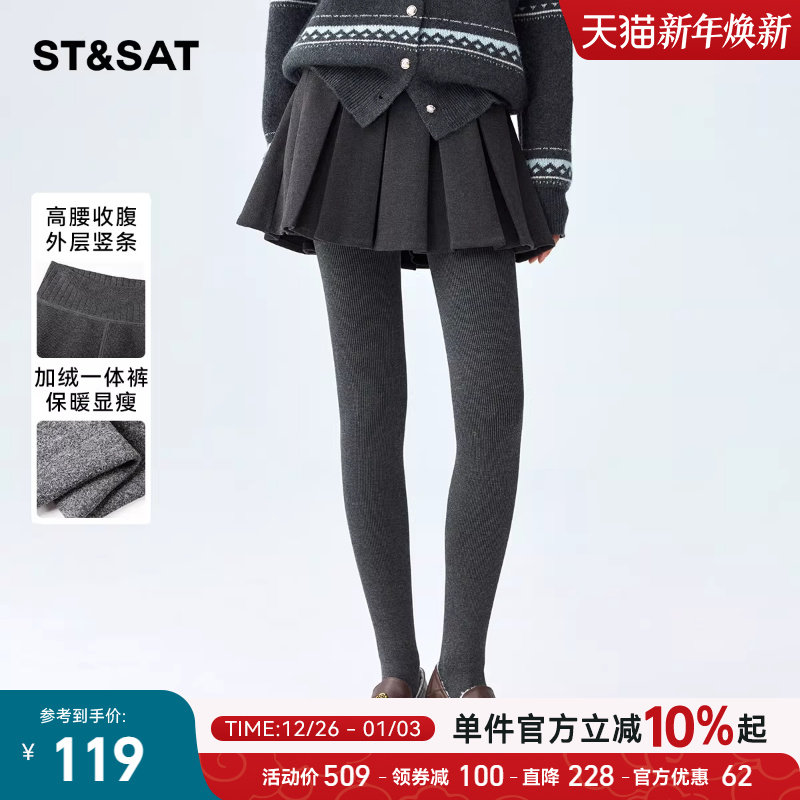 星期六灰色加绒加厚连袜裤女冬塑型收腹提臀显瘦外穿打底裤压力袜
