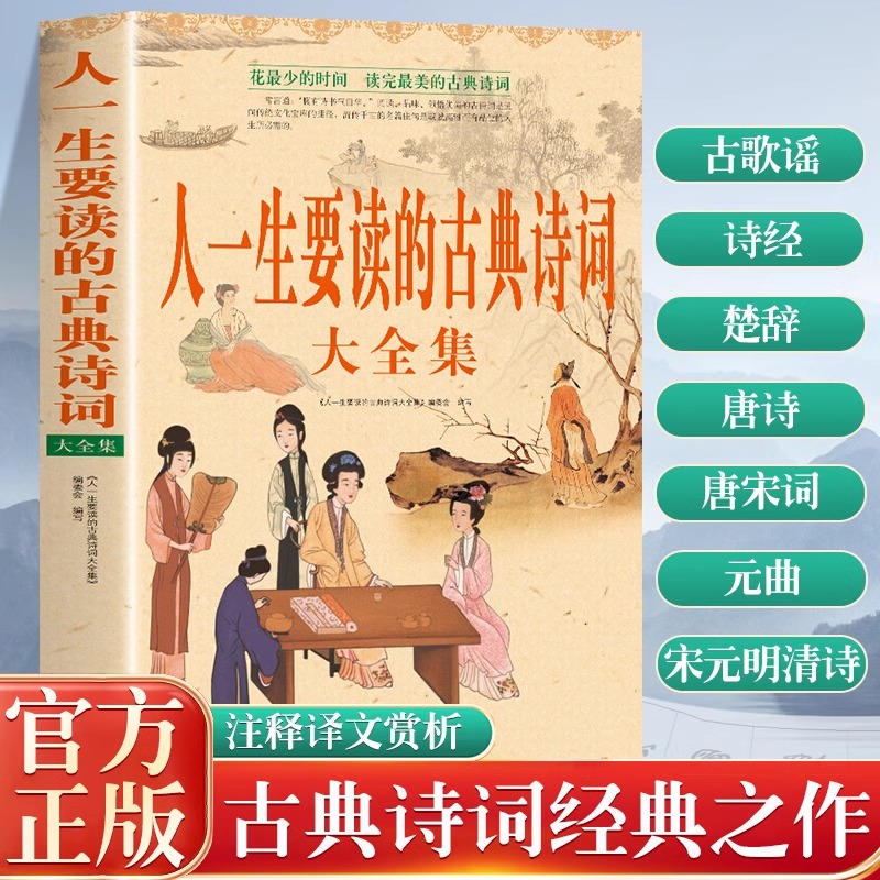 人一生要读的古典诗词大全集正版 花zui少的时间读完zui美的古典诗词国学书 品味中国古典文学之美古歌谣诗经楚辞唐诗唐宋词元曲等