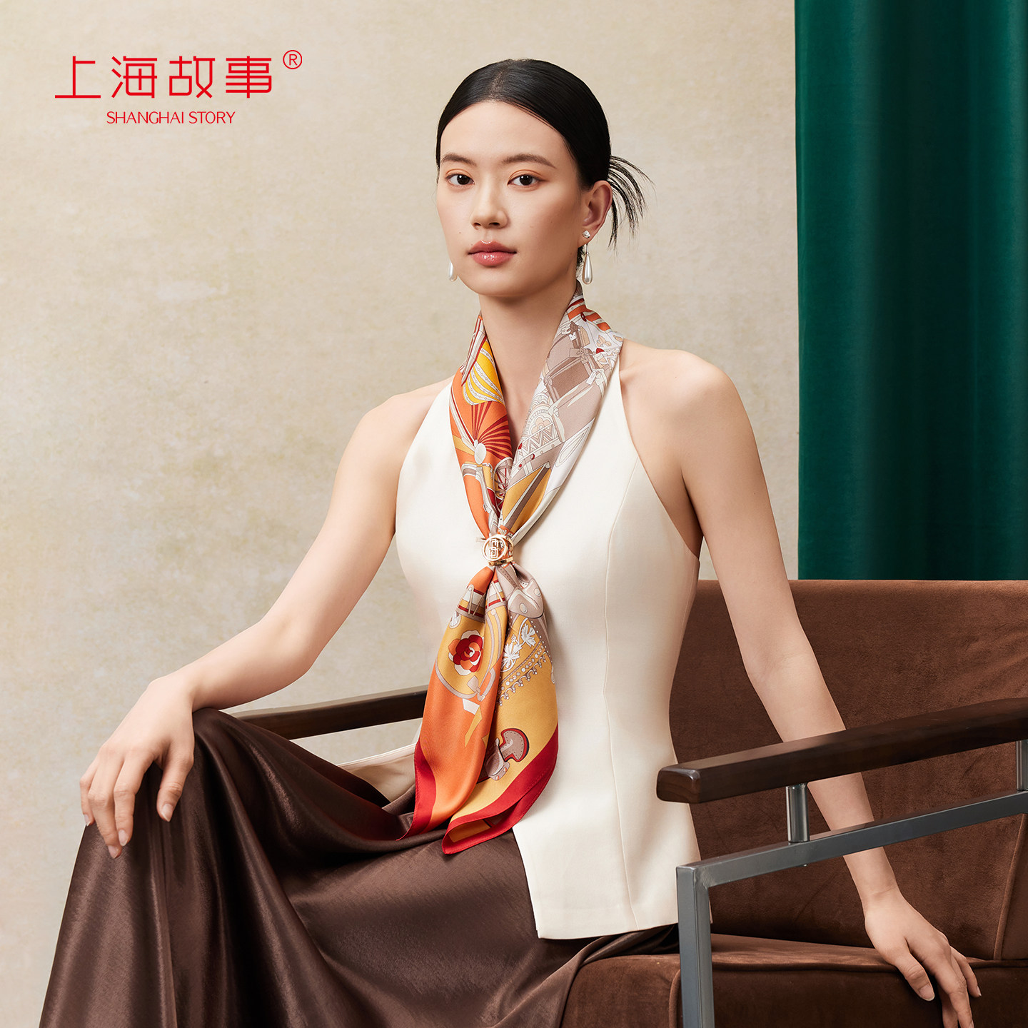 【专柜同款】上海故事2026新款桑蚕丝香云纱大方巾女送长辈礼盒装