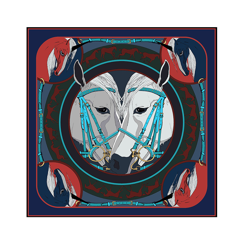 爱马鞍具女仕丝巾100%真丝桑蚕丝女士大方巾围巾90cm双面披肩丝巾
