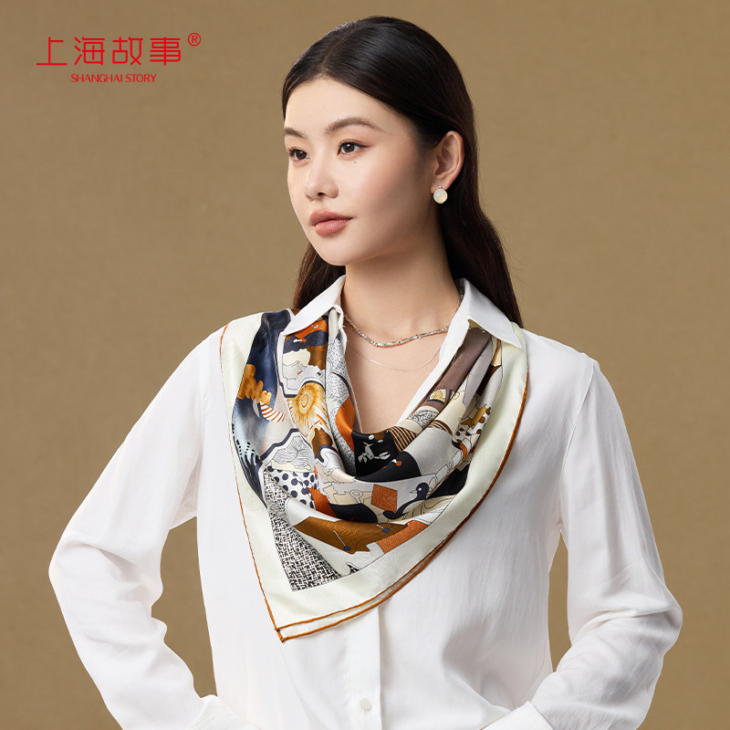 上海故事2026春季新款真丝印花大方巾女桑蚕丝礼盒丝巾系脖妈妈款