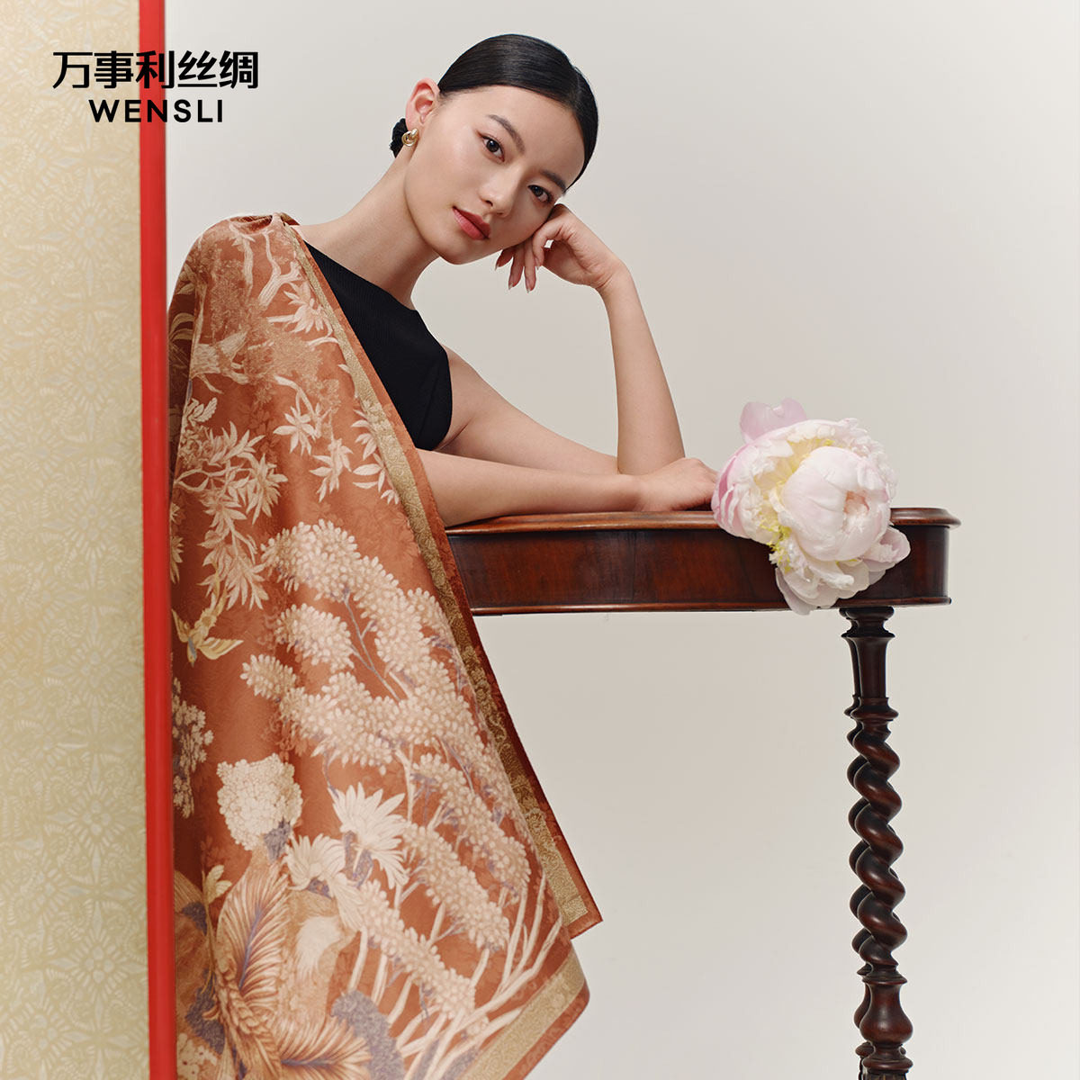 万事利新款100%桑蚕丝真丝丝巾重磅牡丹提花披肩礼物大方巾林南辞