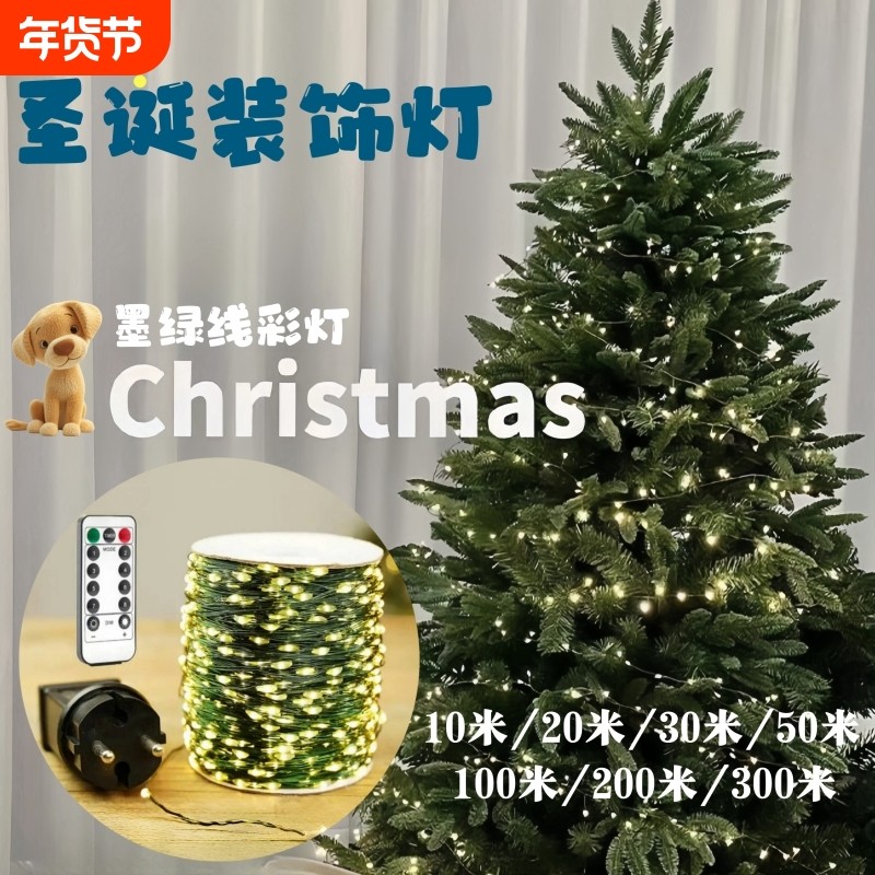 遥控圣诞树灯串绿线铜丝星星彩灯串灯满天星绿植圣诞藤条花环装饰