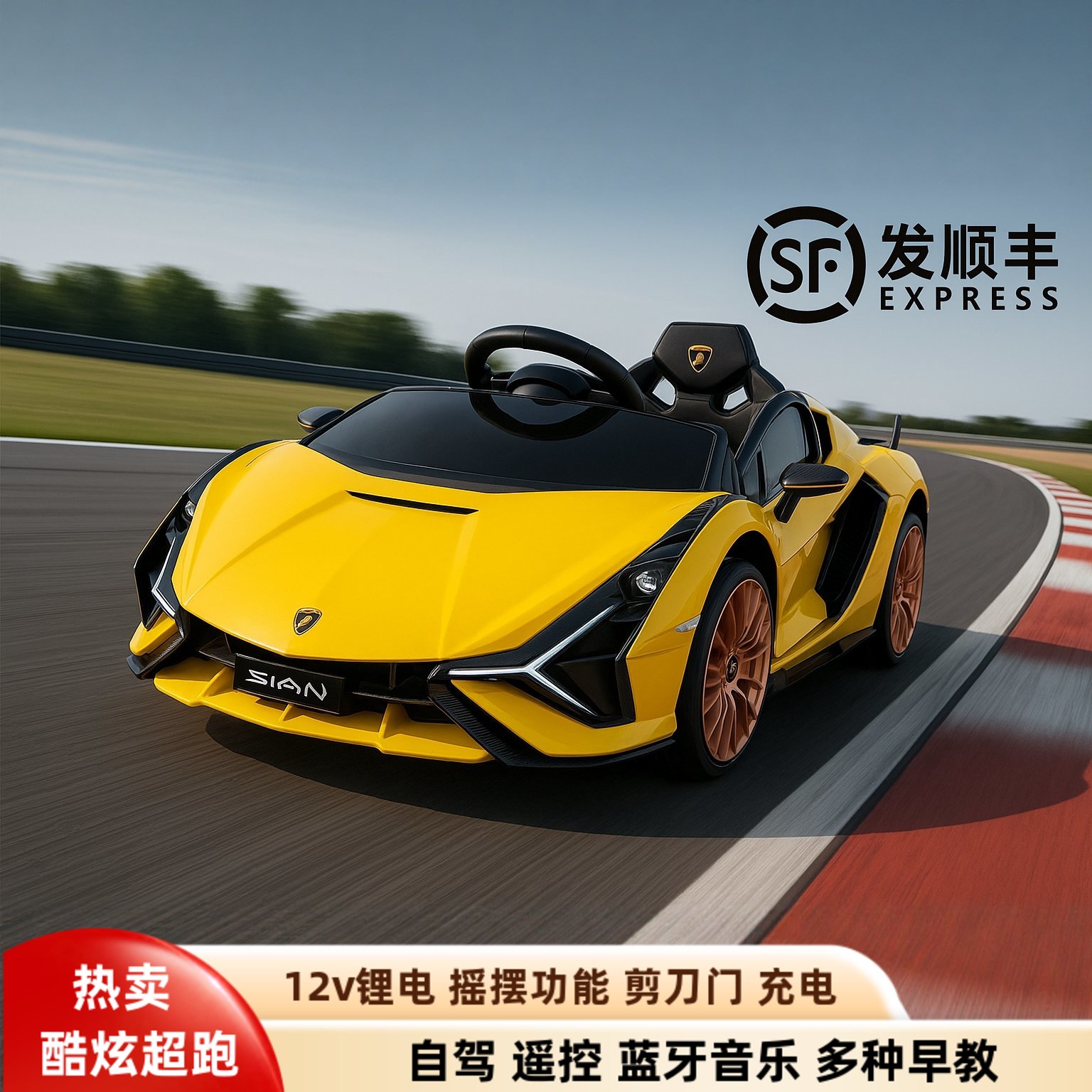 兰博基尼儿童电动车四轮汽车遥控玩具车可坐人小孩带摇摆宝宝童车