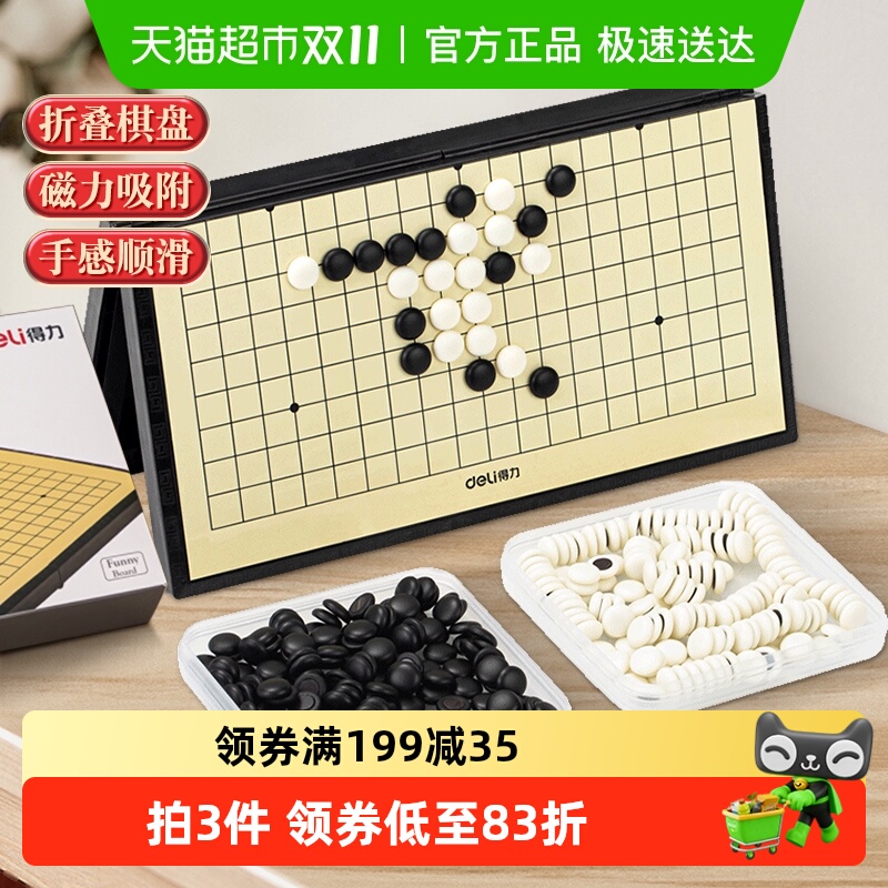 包邮得力围棋五子棋带磁性黑白棋子折叠棋盘便携学生儿童初学益智