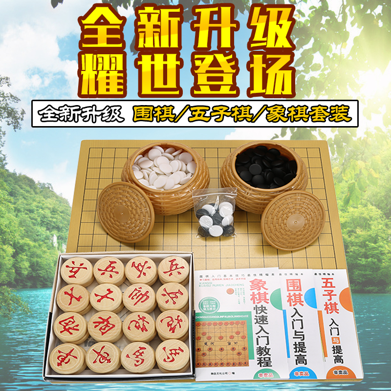 围棋五子棋包邮套装初级十三路九路棋盘围棋子黑白棋木棋盘皮棋盘