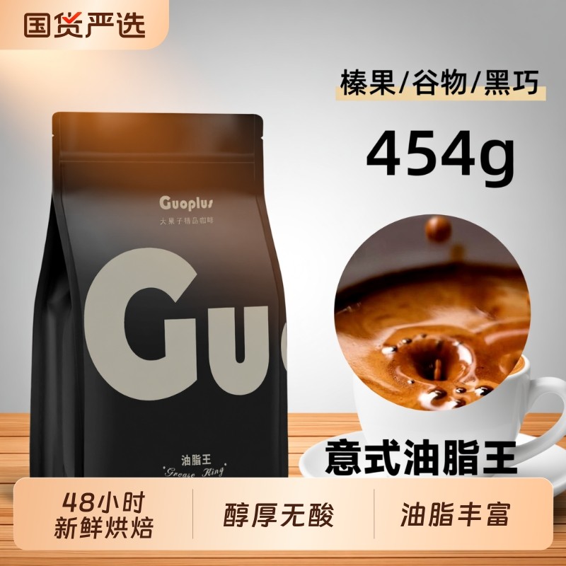 咖啡豆GUOPLUS油脂王意式浓缩拼配现磨深度烘焙黑咖啡粉商用手冲