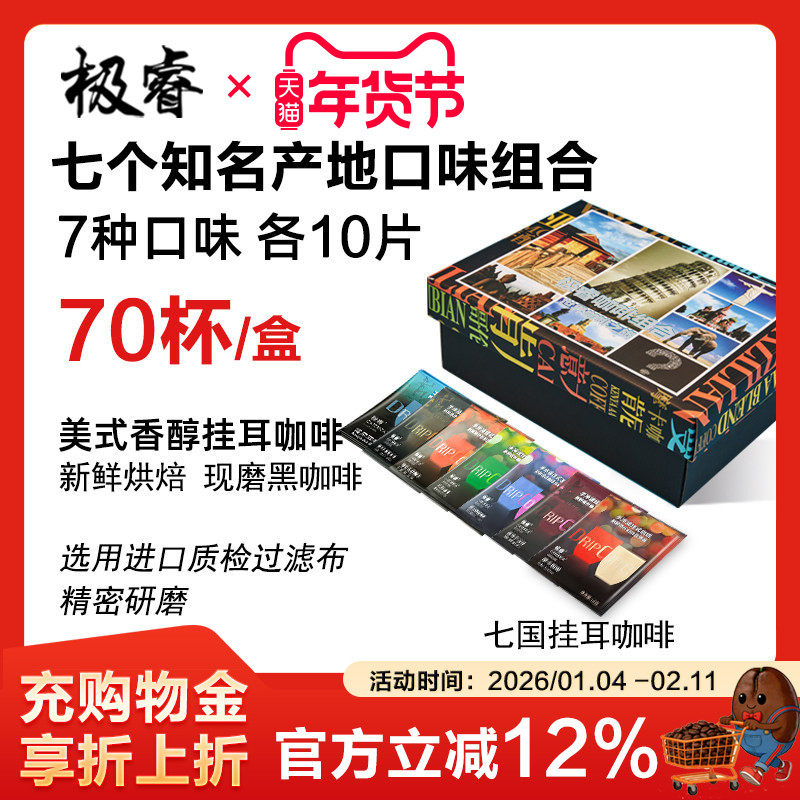 极睿挂耳咖啡礼盒滤挂现磨纯黑咖啡粉耳挂式手冲袋泡意式特浓70片