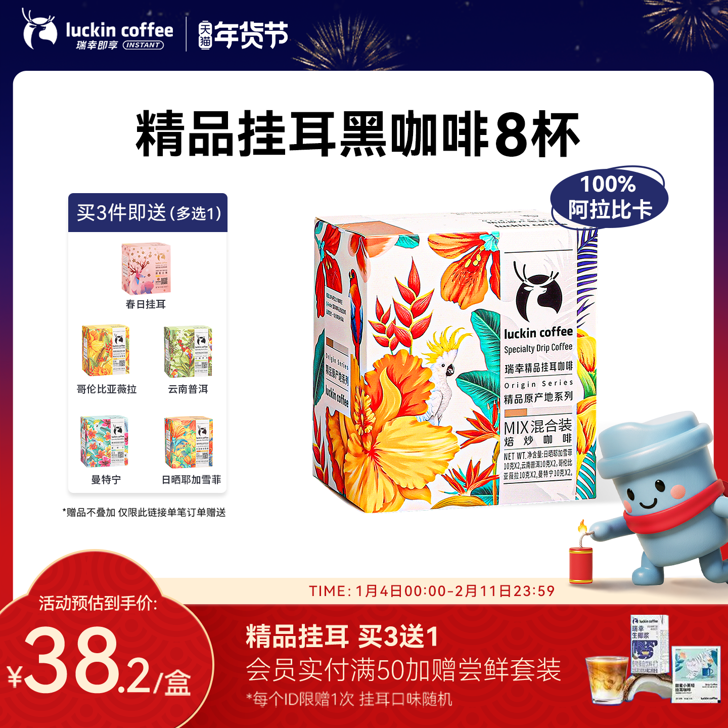 【限时买三送一】瑞幸原产地精品挂耳咖啡豆粉现磨手冲滤挂黑咖啡