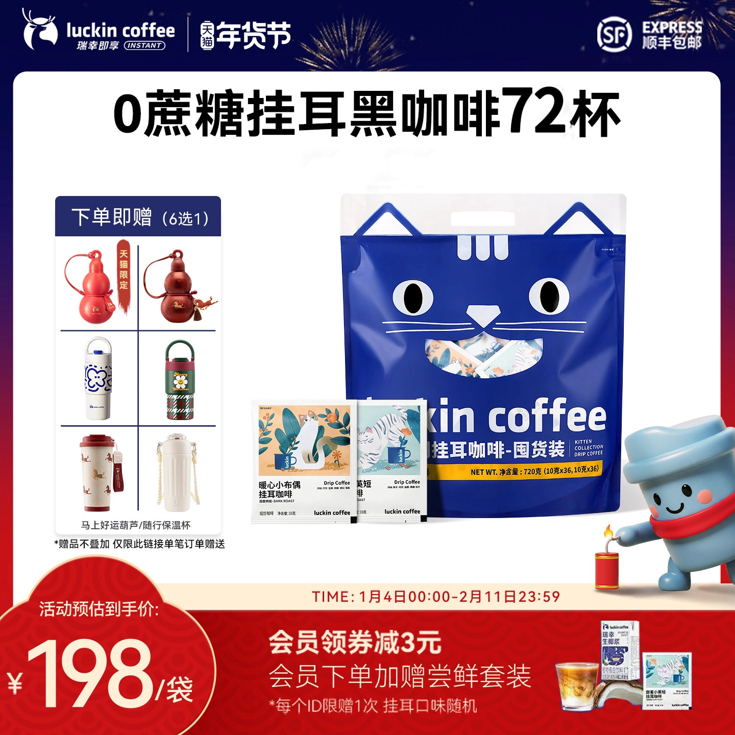 瑞幸咖啡挂耳咖啡滤袋现磨手冲研磨0蔗糖美式黑咖啡粉72袋囤货装