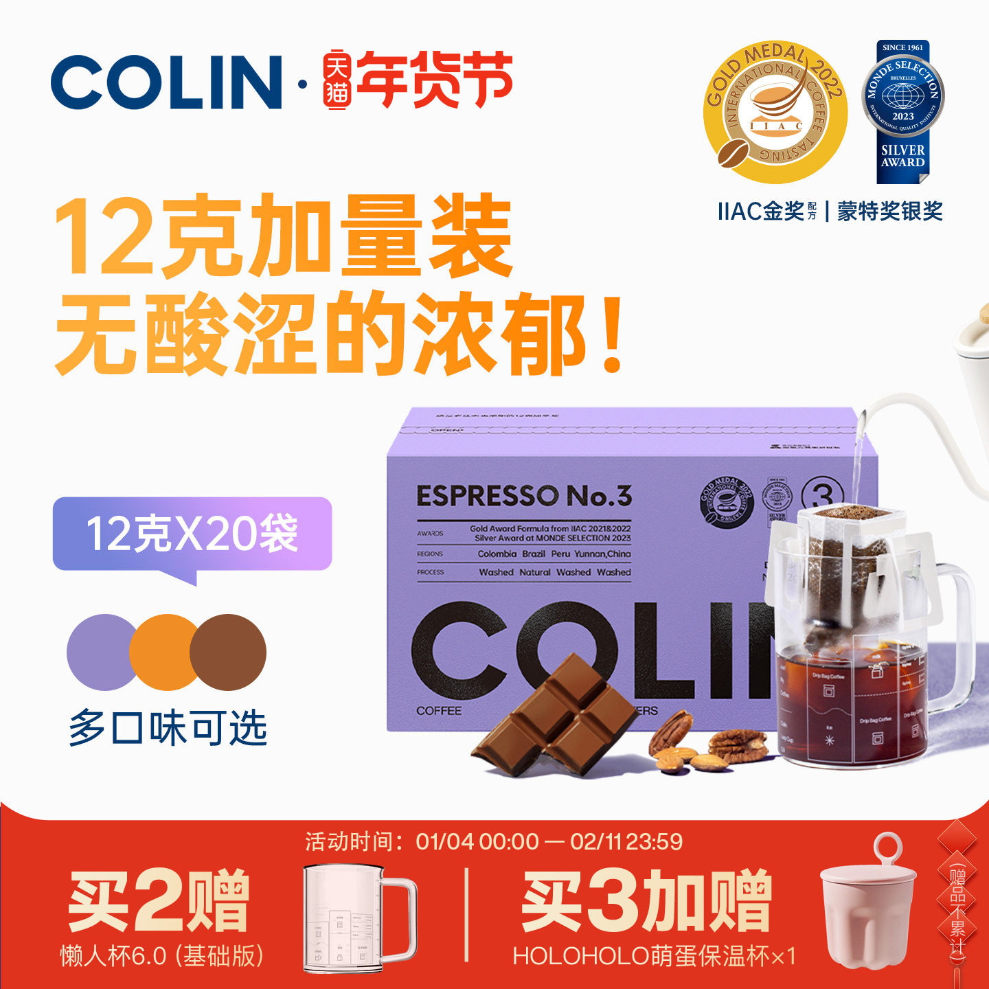 柯林数字挂耳咖啡意式美式纯黑无酸挂耳包精品现磨咖啡粉12g*20袋