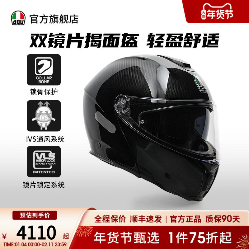 AGV SPORT MODULAR碳纤维双镜片揭面盔机车头盔官方旗舰店