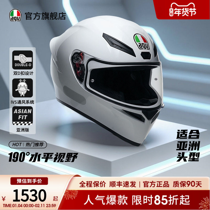 AGV全盔K3摩托车头盔男女机车跑盔双镜片大尾翼四季防雾官方旗舰