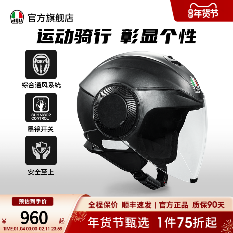新款AGV意大利ORBYT摩托车头盔男女双镜片四分之三半盔春夏正品