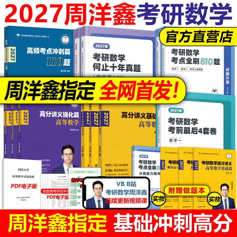 官方新版】周洋鑫2027考研数学高分讲义基础篇强化考点全刷+何止十年真题预测4套卷110题26强化800题27数学一数二数三考点精讲2026
