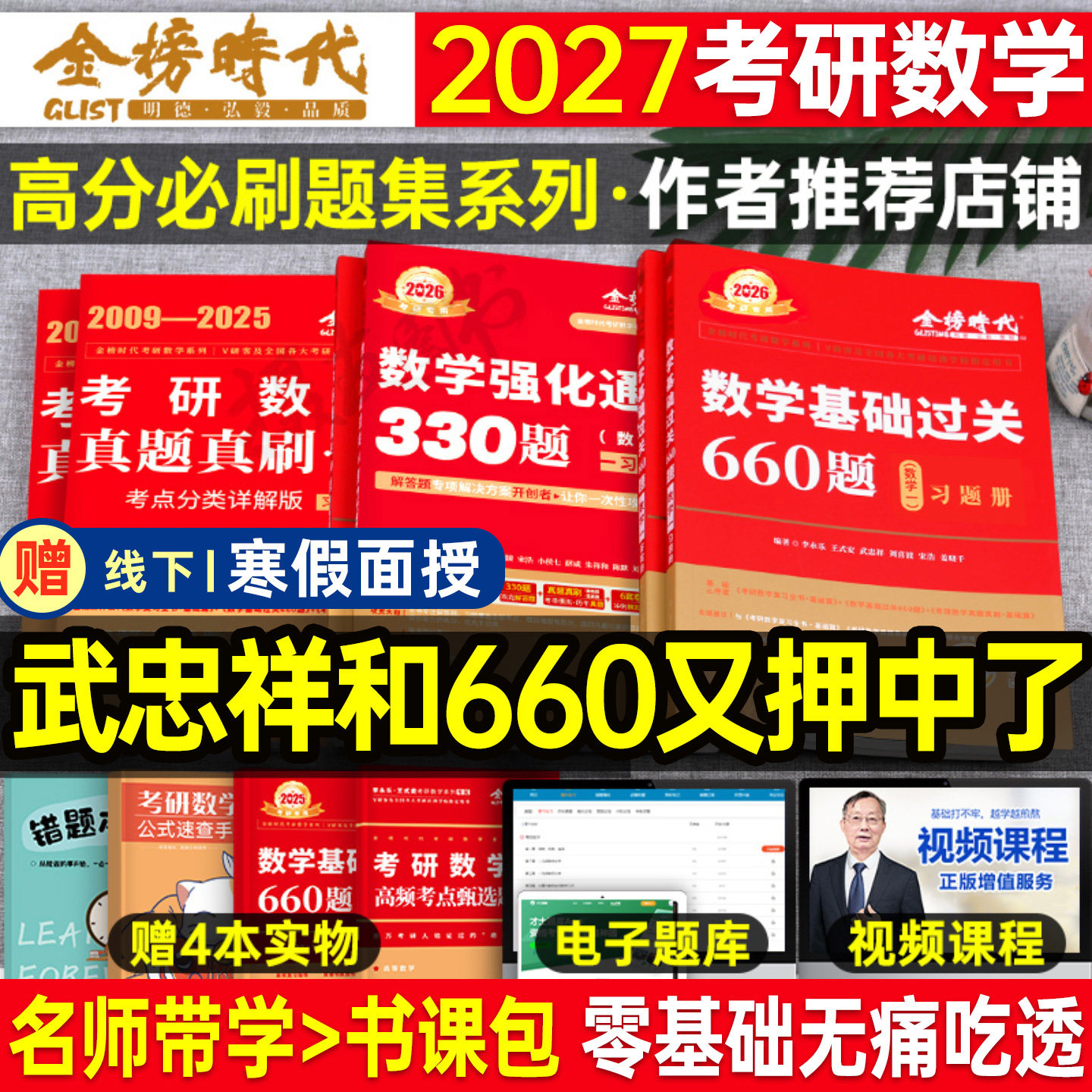 金榜2027考研数学武忠祥高等数学基础篇复习全书李永乐线性代数660严选题辅导讲义强化2026年数学一数二三历年真题真刷试卷概率论