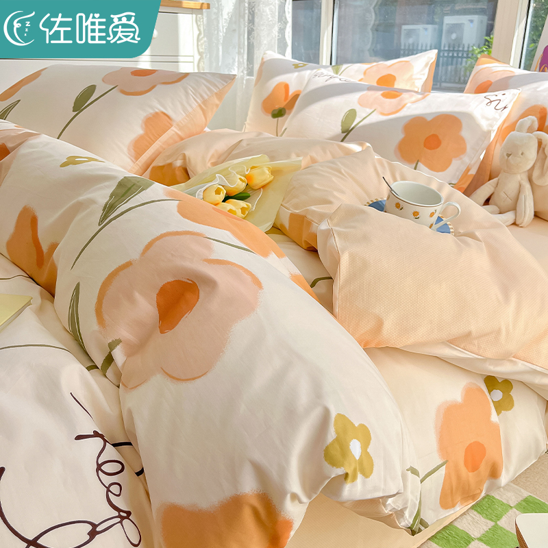 纯棉四件套全棉床单被罩被套学生宿舍单人简约床上用品三件套四季