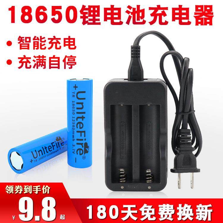18650锂电池大容量强光手电筒电推剪头灯收音机3.7v-4.2v智能快充