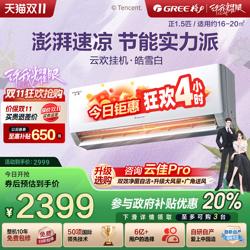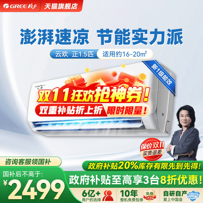 【政府补贴】格力空调正1.5匹大1匹家用挂机一级能效官方旗舰云欢