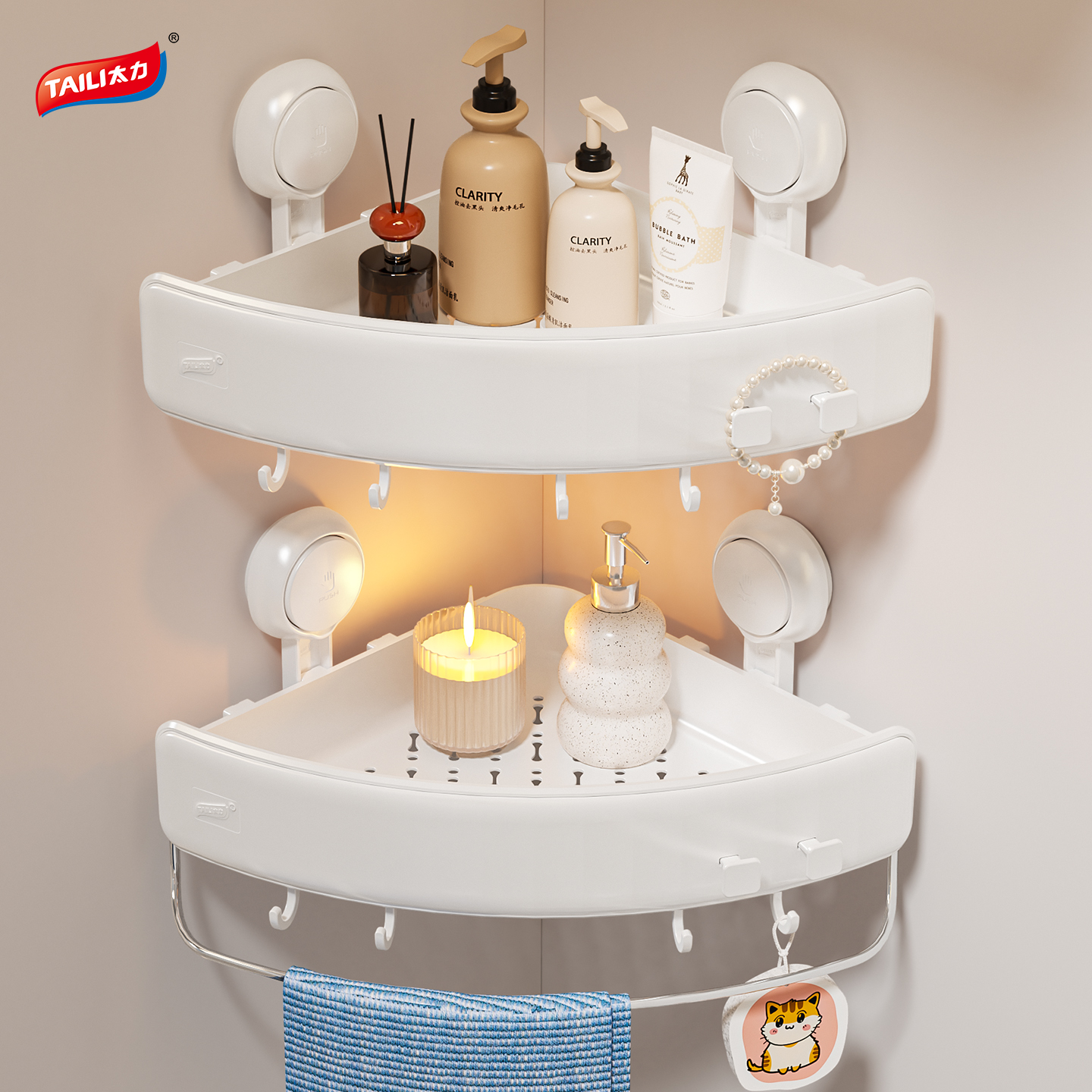 太力浴室卫生间转角置物架洗漱洗澡厕所壁挂强力吸盘三角收纳架子