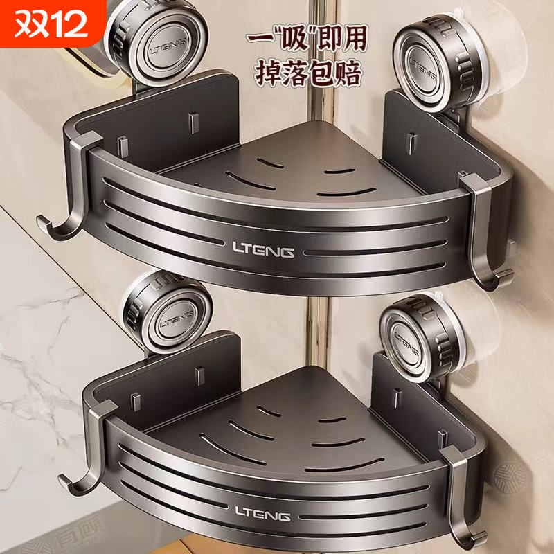 枪灰免打孔太空铝浴室置物架卫生间三角篮壁挂架洗手间墙角收纳架
