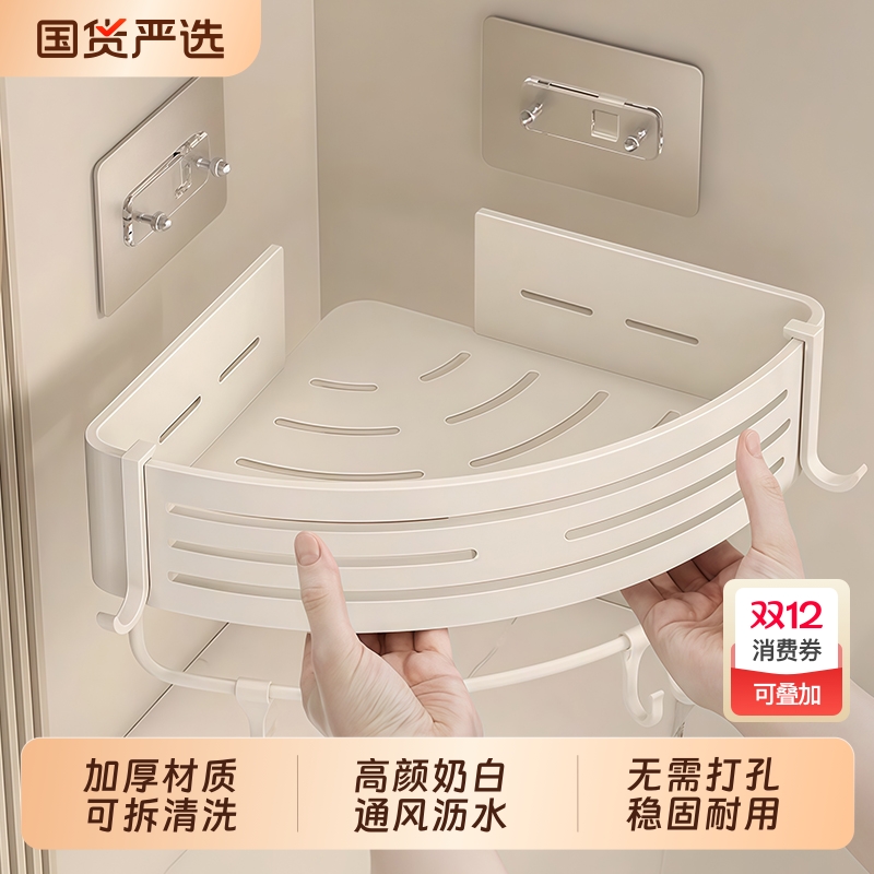 尔沫浴室置物架三角卫生间免打孔转角收纳挂架子壁挂洗澡间洗漱台