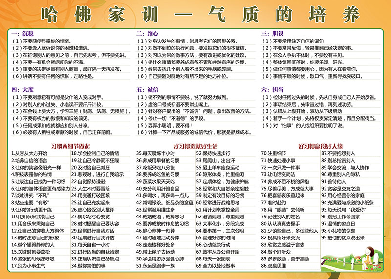 家庭励志经典哈佛家训朱子家风家规治家格言父母规夫妻规挂图墙贴