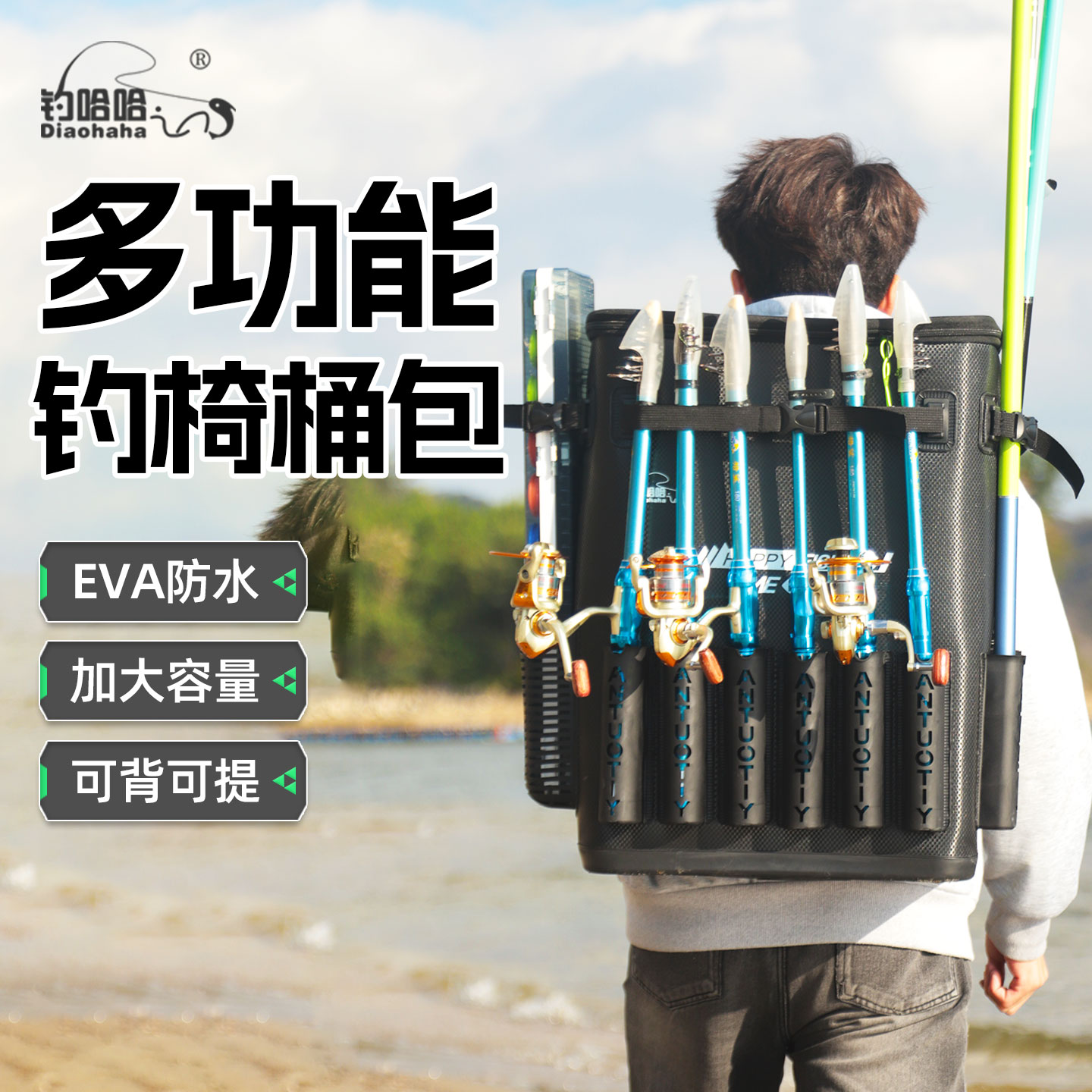 钓哈哈新款多插杆槽钓桶一体成型鱼桶便携水桶钓椅包多功能钓鱼桶