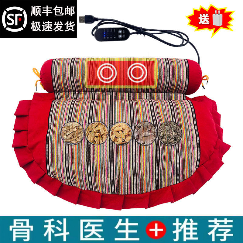 精选颈椎枕头修复颈椎专用护颈枕电加热矫正牵引粗盐热敷理疗枕红