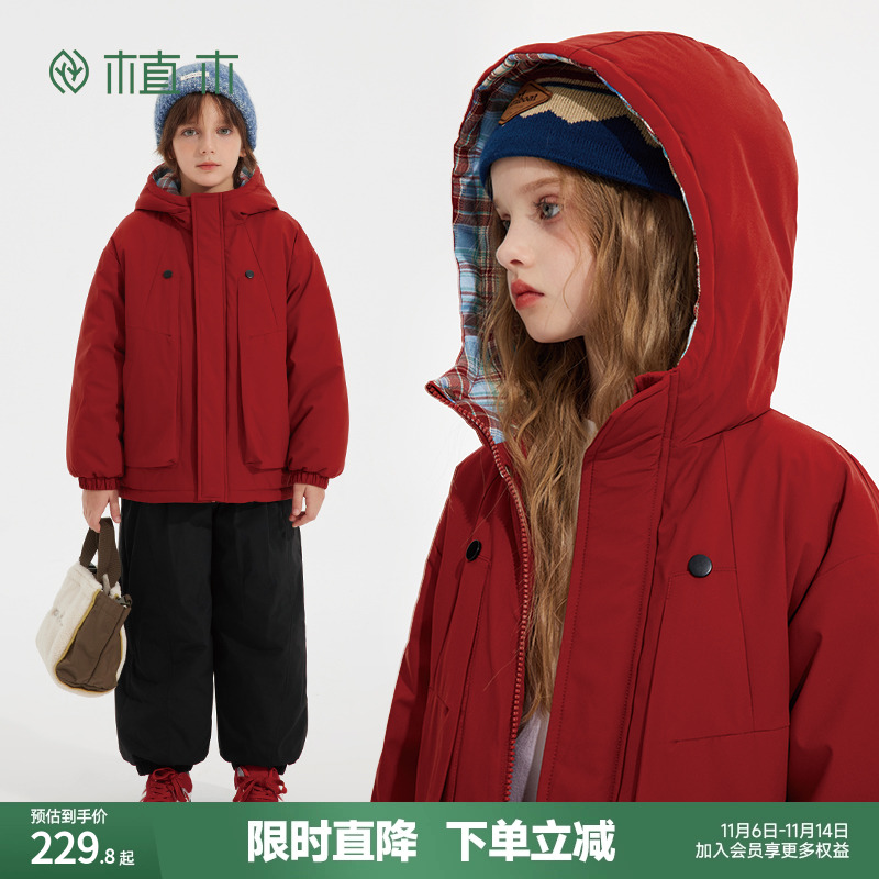 植木童装男童女童装棉服2025新款中大童连帽棉服外套儿童棉袄