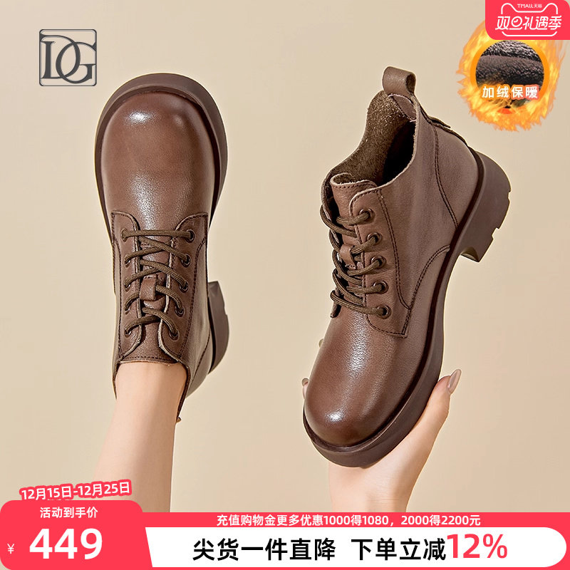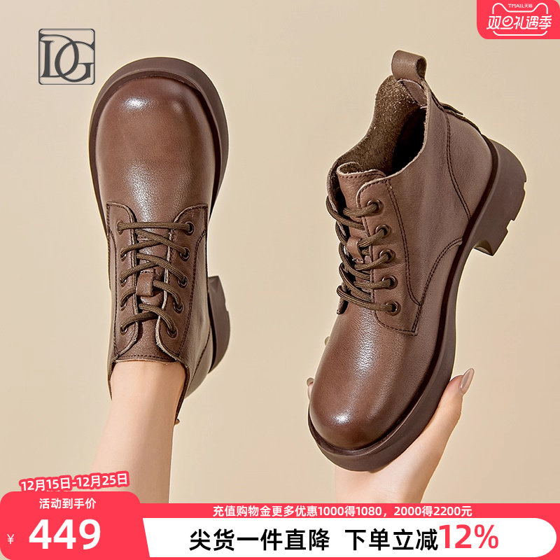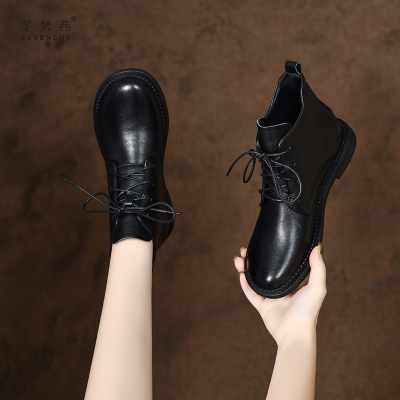 2025新款软皮马丁靴女英伦风平底小短靴及踝靴春秋软底系带真皮鞋